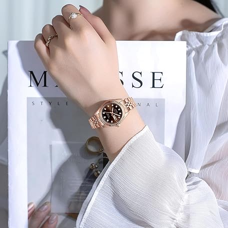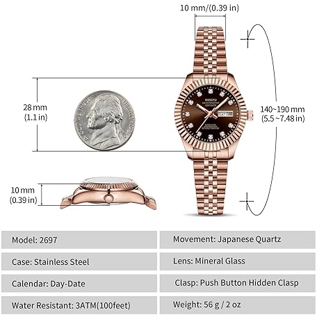 NIBOSI Watches for Women Analog Quartz Stainless Steel Dial with Day Date Luminous Waterproof Dainty Classic Luxury Diamond Elegant Dress Women's Watch for Small Wrists