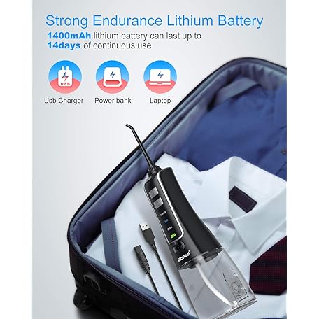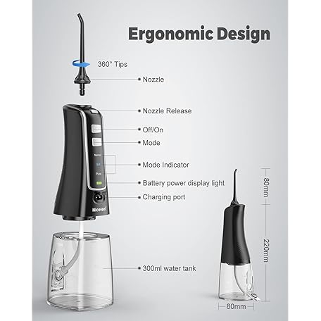 Thông tin sản phẩm Nicefeel Cordless and Rechargeable Water Flosser - 300ML Water Tank Oral Irrigator, 4 Jet Tips, 3 Pressure Modes - IPX7 Waterproof and Travel Friendly for Dental Care