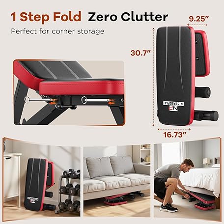 Thông tin sản phẩm NICEPEOPLE Basic Weight Bench for Home Gym, 8 Backrests Adjustable Bench with 660LBS Weight Capacity for Chest Shoulders Arms Muscles, Foldable and Compact for Small Space Apartment Room
