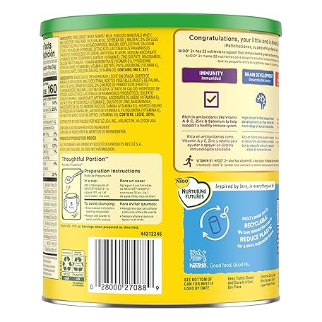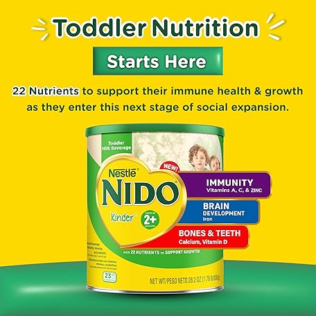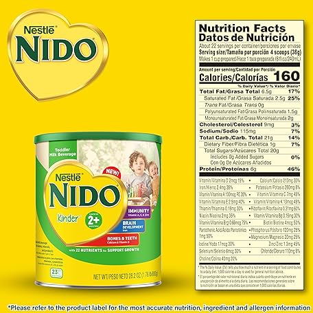 Thông tin sản phẩm Nido Kinder Toddler Milk Beverage Powder Mix, 2 + Years, 23 Servings per Container, 28.2oz