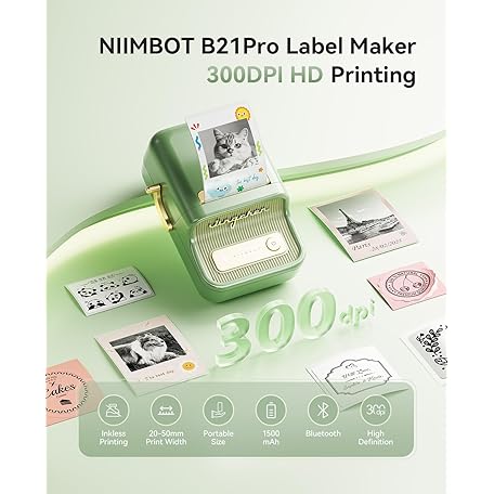 NIIMBOT B21 Pro Label Maker, 300DPI HD Label Printer, Ideal for Notes,Photos, Study Graphics, Memo Maker,50x30mm Label,230Pcs(Pine Green)