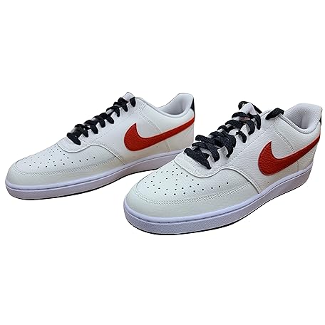 Nike Men's Court Vision Low Sneaker, White Cream Black Red, 10.5