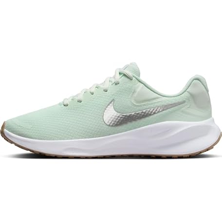 Nike Revolution 7 Women's Road Running Shoes (FB2208-303, Barely Green/White/Platinum Tint/Metallic Silver) Size 6