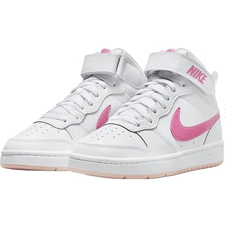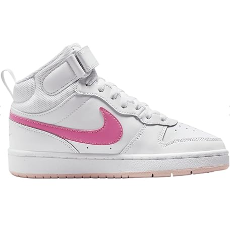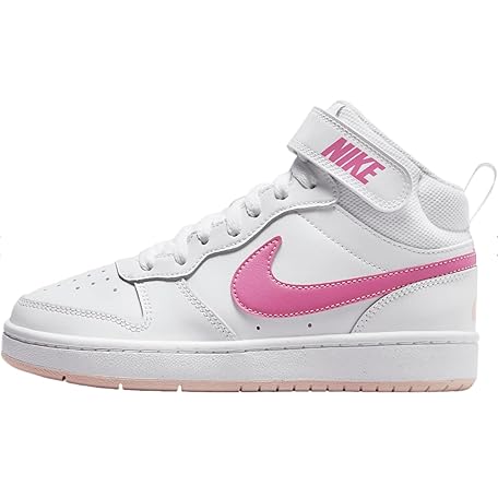 • Nike unisex-child Court Borough Mid 2 (Big Kid), White/Pinksicle/Orange Artic