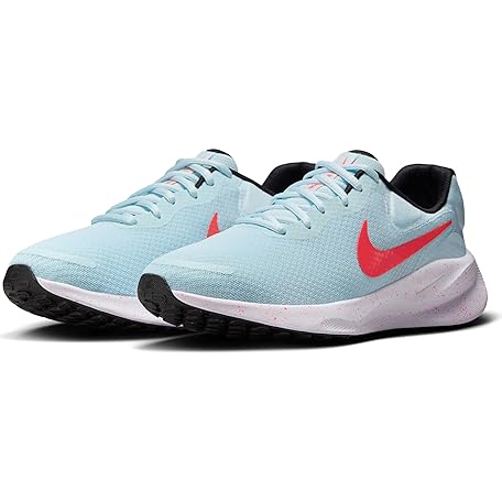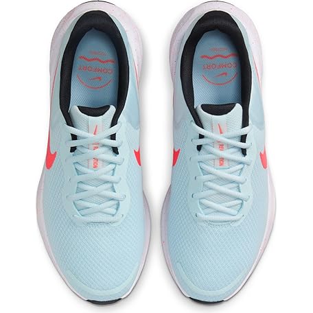NIKE Women's Revolution 7 Sneaker, Glacier Blue Bright Crimson Bl, 6 UK