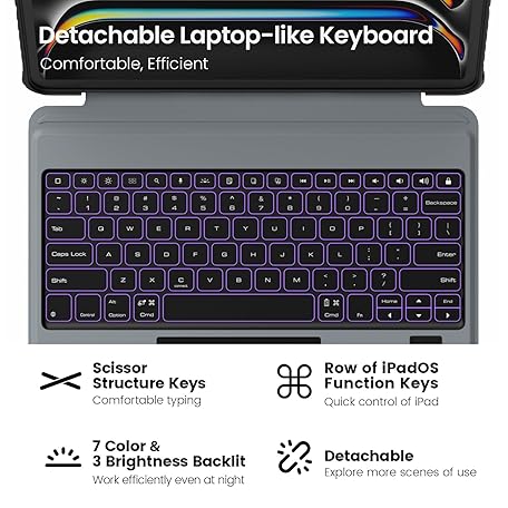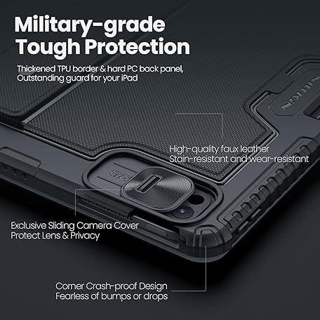 Thông tin sản phẩm Nillkin iPad Pro 13 inch (M5, 2025/M4,2024) Case with Detachable Keyboard, Magic Trackpad, 7 Colors Backlit, Rugged Keyboard Case with Camera Cover for iPad Pro 13”, Portrait/Landscape Modes, Black