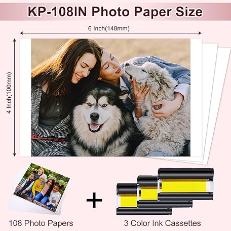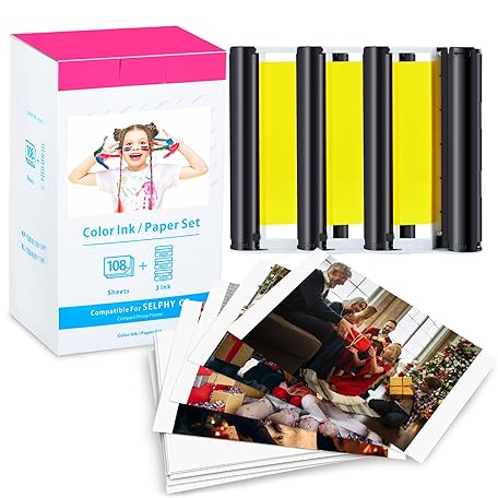 NineLeaf Compatible for Canon Selphy CP1500 CP1300 Ink and Paper KP-108IN KP108 3 Color Ink Cartridges and 108 Sheets 4x6 Photo Paper Glossy for Selphy CP1200 CP1000 CP910 CP900 CP810 Photo Printer