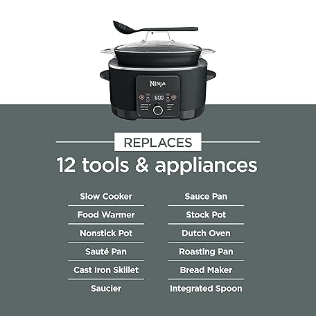 Thông tin sản phẩm Ninja 12-in-1 PossibleCooker™ PLUS | 8.5-qt - Sous Vide & Proof Multi-Cooker | Slow Cooker, Dutch Oven & More | Glass Lid & Integrated Spoon | Nonstick | Oven Safe Pot to 500°F | Black | MC1010