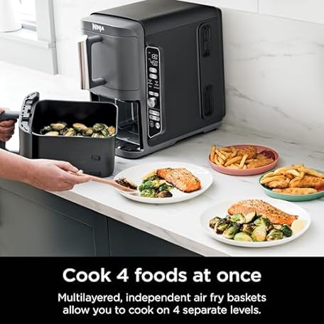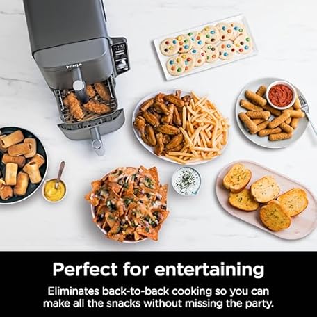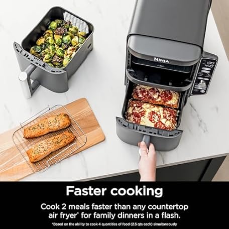 Thông tin sản phẩm Ninja Air Fryer, 10QT DoubleStack XL 2-Basket, Compact Design, Cooks 5lb Whole Chicken, Feeds Up to 8 People, 6-in-1 Air Fryer, Roast, Bake & More, Easy to Clean, Dishwasher Safe Parts, Grey, SL401