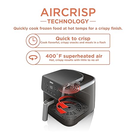 Thông tin sản phẩm Ninja | Air Fryer | 4-in-1 Pro Air Fry, Roast, Reheat, Dehydrate | 5QT Capacity fits up to 4lbs of French Fries | 400F Max Temp | Nonstick Basket & Crisper Plate | 120V | Grey | AF141
