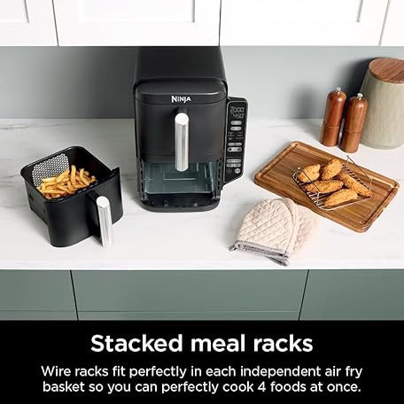 Thông tin sản phẩm Ninja Air Fryer, 8 QT DoubleStack 2-Basket, Space Saving Design, Cooks 2lb Chicken Wings, Feeds up to 6 People, 6-in1 Air Fryer, Roast, Bake & More, Easy to Clean, Dishwasher Safe Parts, Black, SL201