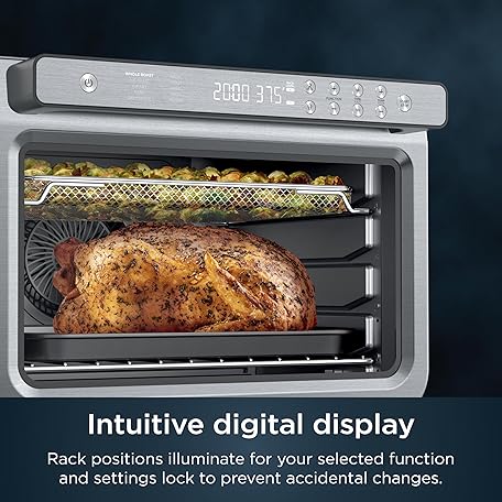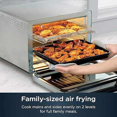 Thông tin sản phẩm Ninja Air Fryer & Toaster Oven | Prestige Smart XL Countertop Oven | Bakes up to 20 Cookies, Fits up to a 12lb Turkey | Pizza, Toast, Bake, Air Fry & Reheat | 1800 Watts | Stainless Steel | DT501