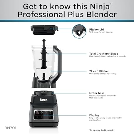 Thông tin sản phẩm Ninja BN701 Professional Plus Blender, 1400 Peak Watts, 3 Functions for Smoothies, Frozen Drinks & Ice Cream with Auto IQ, 72-oz.* Total Crushing Pitcher & Lid, Dark Grey