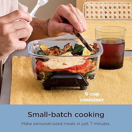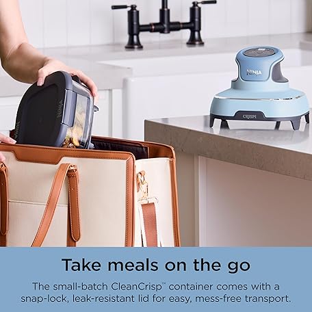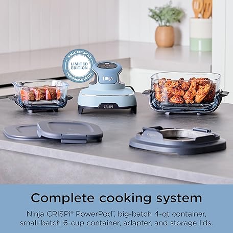 Ninja Crispi 4-in-1 Portable Glass Air Fryer Cooking System, 4QT & 6Cup Glass Containers with Storage Lids, Easy Meals, Microwave, Freezer & Dishwasher Safe, Air Fry, Bake, & More, Periwinkle, FN101PL