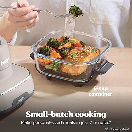 Thông tin sản phẩm Ninja Crispi Air Fryer, Microwave, Freezer & Dishwasher Safe, Non Toxic Glass Portable Cooking System, 4 QT & 6 Cup Glass Containers with Storage Lids, Easy Meals, Air Fry, Bake, Stone, FN101ST