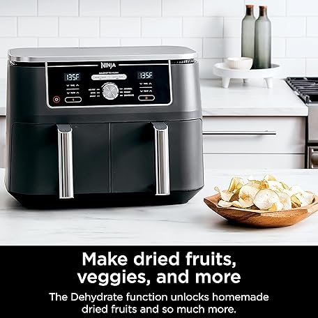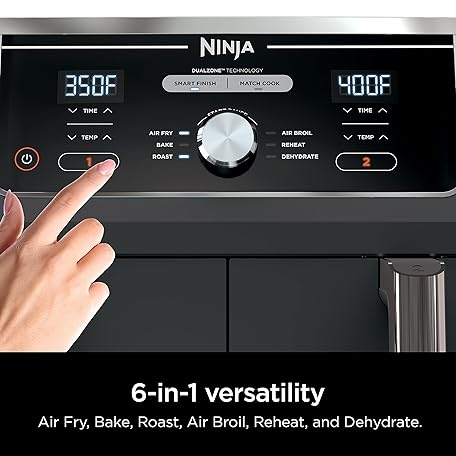 Thông tin sản phẩm Ninja DZ401 Foodi 10 Quart 6-in-1 DualZone XL 2-Basket Air Fryer with 2 Independent Frying Baskets, Match Cook & Smart Finish to Roast, Broil, Dehydrate for Quick, Easy Family-Sized Meals, Grey