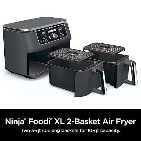 Sản phẩm Ninja DZ401 Foodi 10 Quart 6-in-1 DualZone XL 2-Basket Air Fryer with 2 Independent Frying Baskets, Match Cook & Smart Finish to Roast, Broil, Dehydrate for Quick, Easy Family-Sized Meals, Grey đang được bán với giá ưu đãi là $141.6891 tại nước Mỹ.