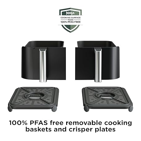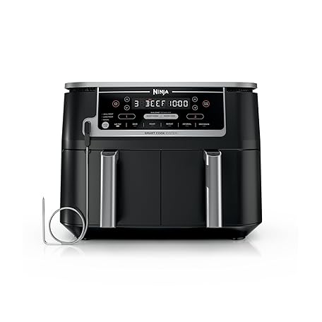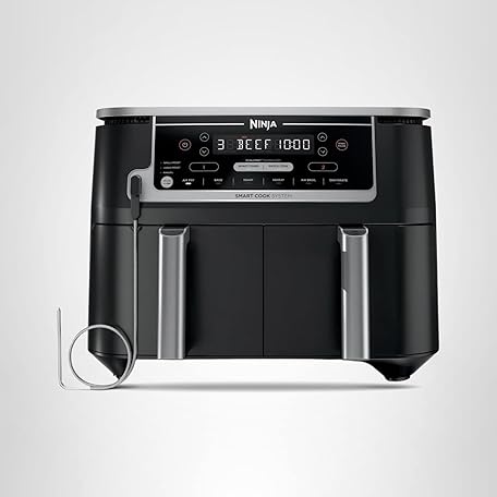 Thông tin sản phẩm Ninja DZ550 Foodi 10 Quart 6-in-1 DualZone Smart XL Air Fryer with 2 Independent Baskets, Thermometer for Perfect Doneness, Match Cook & Smart Finish to Roast, Dehydrate & More, Grey