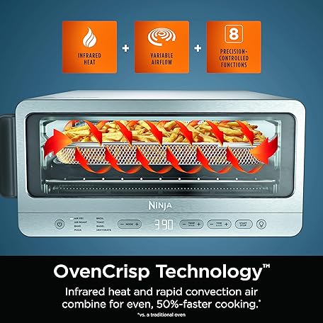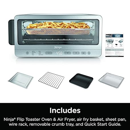 Thông tin sản phẩm Ninja Flip Toaster Oven&Air Fryer, 8-in-1 Functionality, Flip Up&Away Capability for Storage Space, LargeCapacity, Air Fry Basket, SheetPan, Wire Rack&Removable Crumb Tray, Stainless,1800 watts, SP151