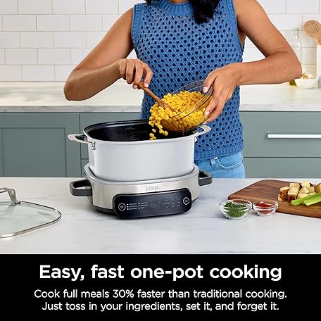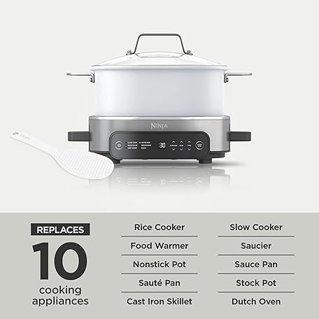 Ninja Foodi 6.5 qt Everyday PossibleCooker, 6-in-1 Functionality, Multi Cooker, Slow Cooker, Stainless Steel/White, MC1100 (Renewed)
