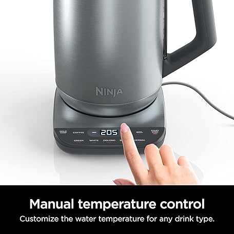 Thông tin sản phẩm Ninja KT200 Precision Temperature Electric Kettle, 1500 watts, BPA Free, Stainless, 7-Cup Capacity, Hold Temp Setting, Silver