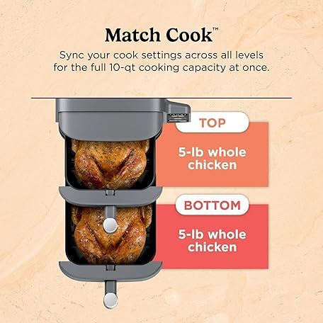 Thông tin sản phẩm Ninja SL400 DoubleStack XL 2-Basket Air Fryer, Cooks 4 Foods at Once, Compact Design, 10 QT, 4-in-1, Smart Finish & Match Cook, Air Fry, Broil, Bake, Easy Meals, Easy Clean, Grey (Renewed)