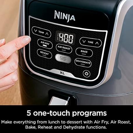 Thông tin sản phẩm Ninja | XL Single Basket Air Fryer | 5.5 QT Capacity fits 3lbs of Wings | 5-in-1Air Fry, Roast, Bake,Reheat & Dehydrate |Dishwasher Safe Parts & Recipe Guide | Grey |AF150AMZ