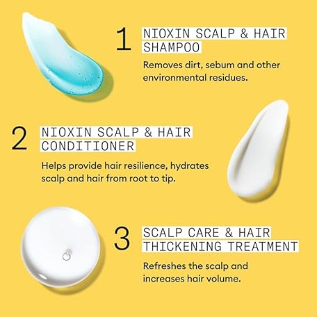 Thông tin sản phẩm NIOXIN Scalp + Hair Thickening System Kits | For Natural, Colored, & Damaged Hair with Light to Progressed Thinning | Strengthen & Boost Hair Density with Niacinamide & Biotin | 1 Month Supply