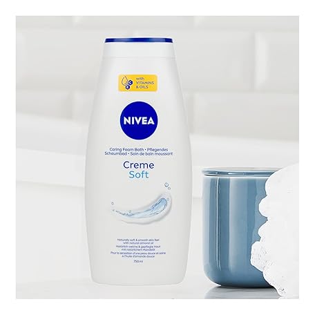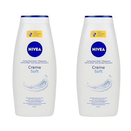 NIVEA Cream Soft Care Bath with Almond Oil, 750 ml – Moisturizing Foam Bath for All Skin Types, Gentle Fragrance, Biodegradable & Microplastic-Free Formula, Long-Lasting Creamy Lather, Pack of 2