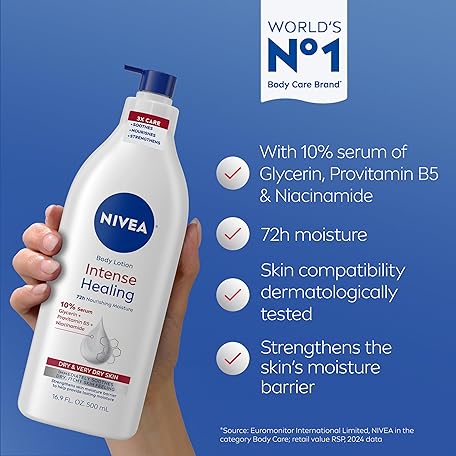 Thông tin sản phẩm NIVEA Intense Healing Body Lotion for Very Dry, Itchy Skin with Glycerin, Provitamin B5 and Niacinamide, 72-Hour Body Moisturizer, Holiday Gifts for Self Care, 16.9 Fl Oz Pump Bottle