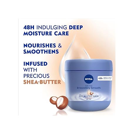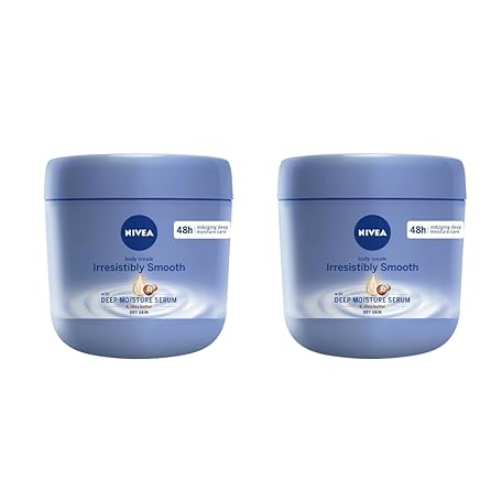 NIVEA Irresistibly Smooth Body Cream with Shea Butter, Deep Moisture Serum, 400ml – Intense Hydration for Dry Skin, Non-Greasy, 48-Hour Moisture, Silky Soft Skin, Daily Body Lotion, Pack of 2