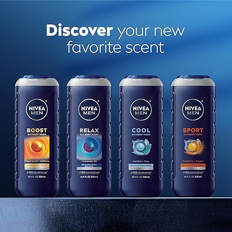 Thông tin sản phẩm NIVEA Men Cool Body Wash, Icy Menthol and Yuzu Scent, 3-in-1 Men's Body Wash, Face and Hair, Paraben Free, pH-Skin Friendly, 16.9 Fl Oz Bottle, Pack of 3