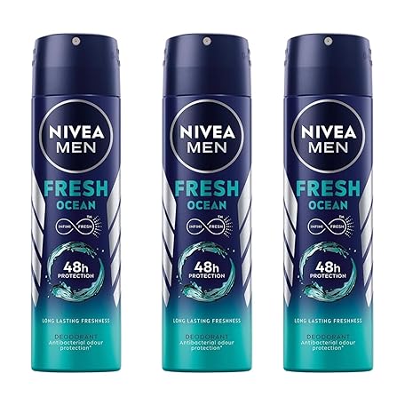 NIVEA MEN Fresh Ocean Deodorant Spray with Ocean Extracts, Long-Lasting Aqua Scent, Odor Protection & Skin Care, 150ml Body Spray for Men, Fresh Citrus, Lavender & Amber Fragrance, Pack of 3