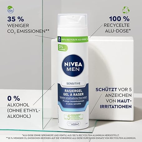 Thông tin sản phẩm NIVEA MEN Sensitive Rasiergel (200 ml), Rasiergel mit Kamille, Hamamelis und Vitamin E für eine sanfte Rasur, schützendes Rasiergel für Männer gegen Hautirritationen