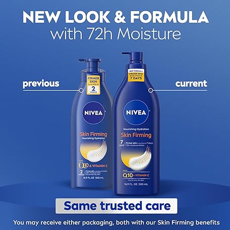 Thương hiệu NIVEA là cái tên nổi tiếng được rất nhiều khách hàng trên thế giới chọn lựa. Với kiểu dáng đẹp mắt, sang trọng, sản phẩm NIVEA Nourishing Hydration Skin Firming Body Lotion with Q10 and Vitamin C, 72-Hour Body Moisturizer for Dry to Very Dry Skin, Holiday Gifts for Self Care, 16.9 Fl Oz Pump Bottle là sự lựa chọn hoàn hảo nếu bạn đang tìm mua một món cho riêng mình.