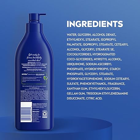 Thông tin sản phẩm NIVEA Nourishing Hydration Skin Firming Body Lotion with Q10 and Vitamin C, 72-Hour Body Moisturizer for Dry to Very Dry Skin, Holiday Gifts for Self Care, 16.9 Fl Oz Pump Bottle