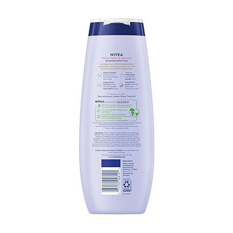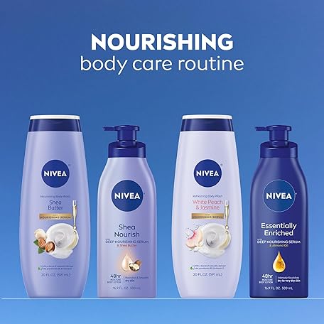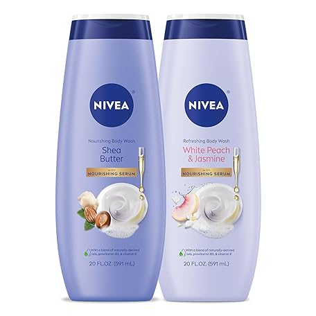 Thông tin sản phẩm NIVEA Nourishing Shea Butter Body Wash, 20 Fl Oz Bottle Refreshing White Peach and Jasmine Scented Body Wash, 20 Fl Oz Bottle, Skin Care Set with Provitamin B5 and Vitamin E