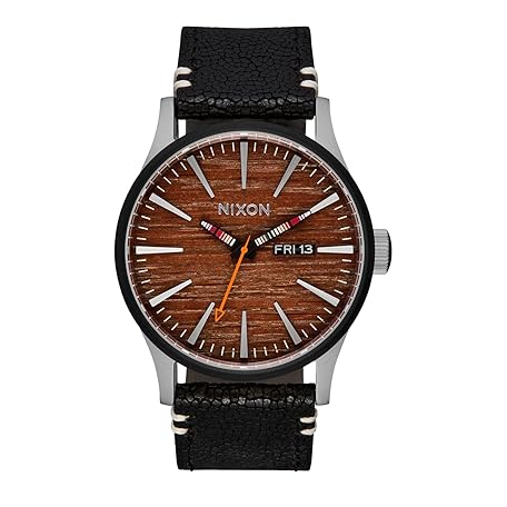 NIXON Men's Sentry Leather Silver/Rosewood/Black 42 mm