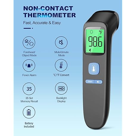Thông tin sản phẩm No-Touch Forehead Thermometer for Adults, Infrared Digital Baby Thermometer for Kids, Accurate Reading with Large Display, Mute Mode, Memory Recall, Fever Alarm