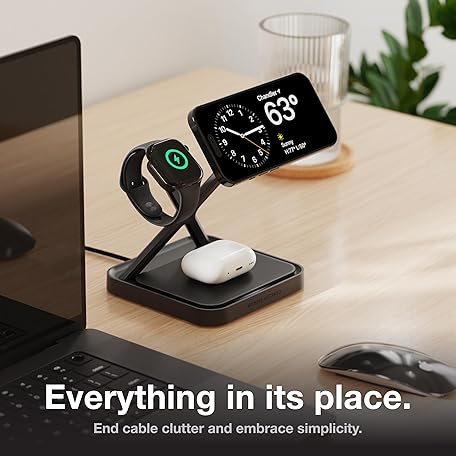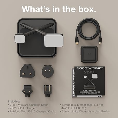 NOCO XGrid XDS3: 3-in-1 Wireless Charging Stand – Charging Station for iPhone, Apple Watch, and AirPods – MagSafe Compatible, Qi2 Certified – Includes 45W USB-C Wall Charger and 6.5-Foot USB-C Cable