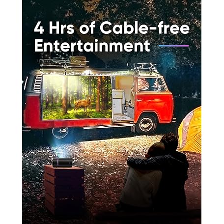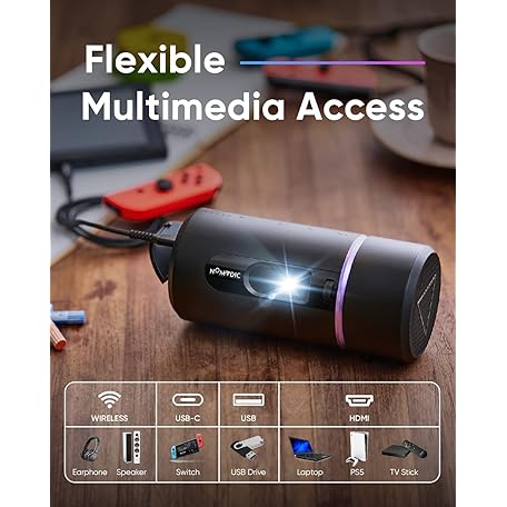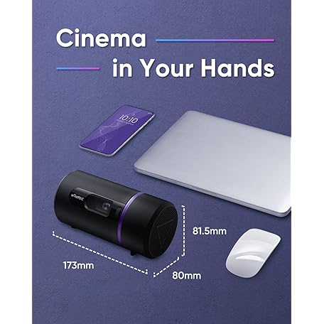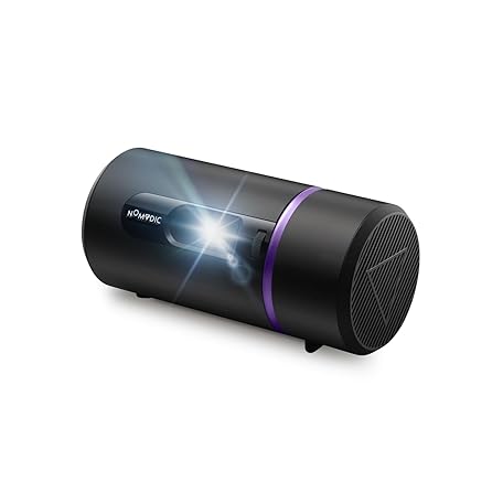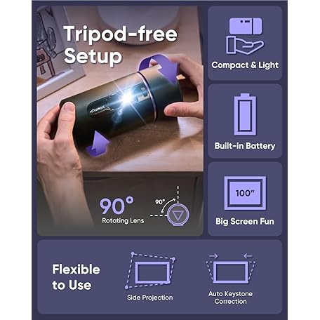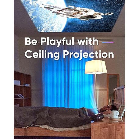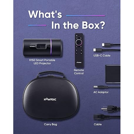 Thông tin sản phẩm NOMVDIC R150 Mini Projector, Portable Battery Operated Projector with 4hrs of Playtime , Ceiling Projector with 90˚ Rotating Lens, 6W Harman Kardon Speaker, Auto Keystone