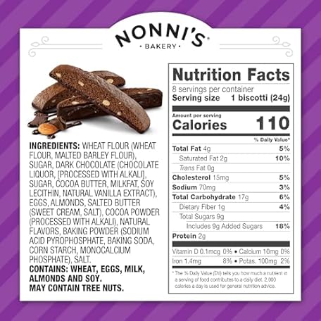 Thương hiệu Nonni's là cái tên nổi tiếng được rất nhiều khách hàng trên thế giới chọn lựa. Với kiểu dáng đẹp mắt, sang trọng, sản phẩm Nonni's Dark Chocolate Almond Biscotti Italian Cookies - 2 Boxes Dark Chocolate Cookies - Biscotti Individually Wrapped Cookies - Italian Biscotti Cookies w/Bittersweet Chocolate & Almonds - 6.88 oz là sự lựa chọn hoàn hảo nếu bạn đang tìm mua một món cho riêng mình.