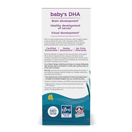 Thông tin sản phẩm Nordic Naturals Baby’s DHA, Unflavored - 2 oz - 1050 mg Omega-3 + 300 IU Vitamin D3 - Supports Brain, Vision & Nervous System Development in Babies - Non-GMO - Servings May Vary
