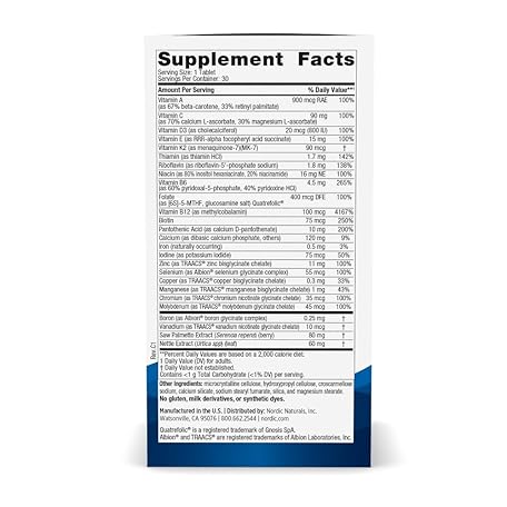 Thông tin sản phẩm Nordic Naturals Men’s Multivitamin One Daily - Bone, Energy, & Blood-Vessel Support - Immunity Supplement - 20 Essential Nutrients - 30 Tablets - 30 Servings