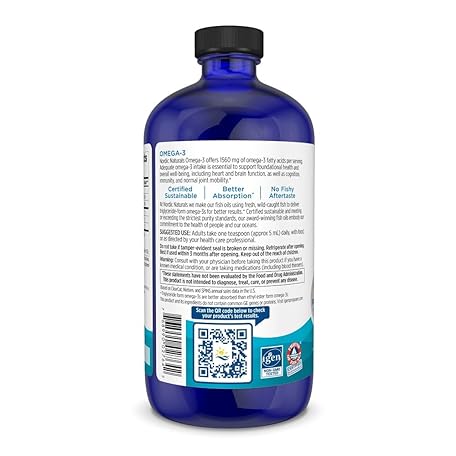 Thông tin sản phẩm Nordic Naturals Omega-3, Lemon Flavor - 16 oz - 1560 mg Omega-3 - Fish Oil - EPA & DHA - Immune Support, Brain & Heart Health, Optimal Wellness - Non-GMO - 96 Servings