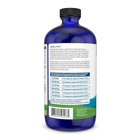 Thông tin sản phẩm Nordic Naturals Omega-3 Pet, Unflavored - 16 oz - 1380 mg Omega-3 Per Teaspoon - Fish Oil for Large to Very Large Dogs with EPA & DHA - Promotes Heart, Skin, Coat, & Immune Health