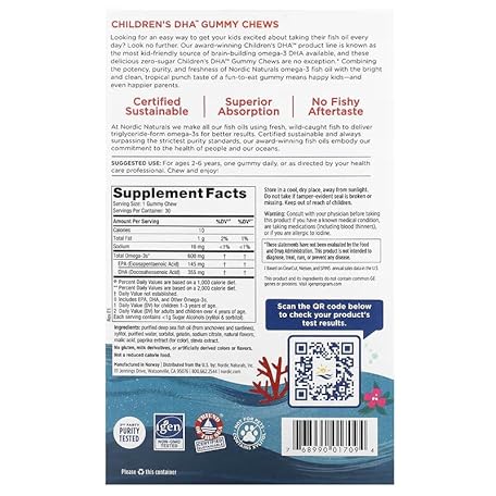 Thông tin sản phẩm Nordic Naturals Zero Sugar Children’s DHA Gummy Chews, Tropical Punch - 30 Gummy Chews for Kids - 600 mg Total Omega-3s - Brain Development, Learning, Healthy Immunity - Non-GMO - 30 Servings