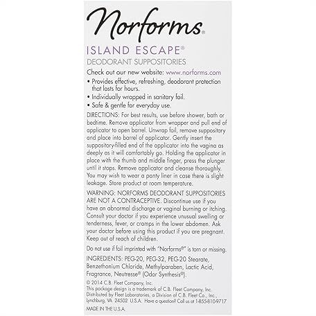 Thông tin sản phẩm Norforms Feminine Deodorant Suppositories, Long Lasting Odor Control, Island Escape Scent, 12 Count Deodorant Suppositories in Each Box (Pack of 3)