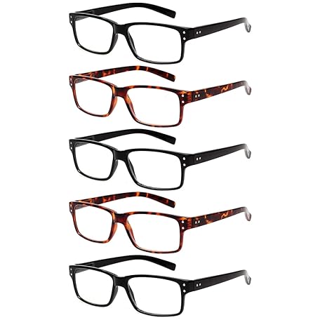 • NORPERWIS Reading Glasses 5 Pairs Quality Readers Spring Hinge Glasses for Reading for Men and Women (3 Black 2 Tortoise, 1.75)