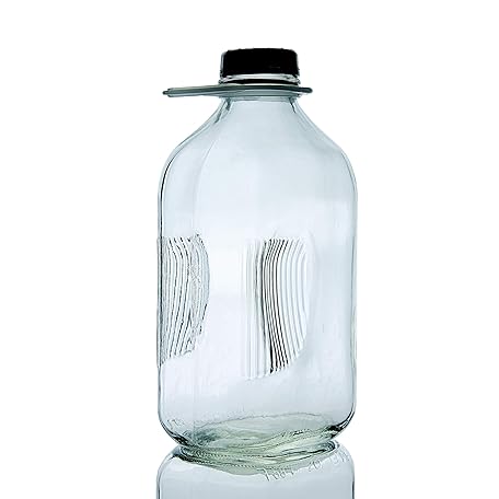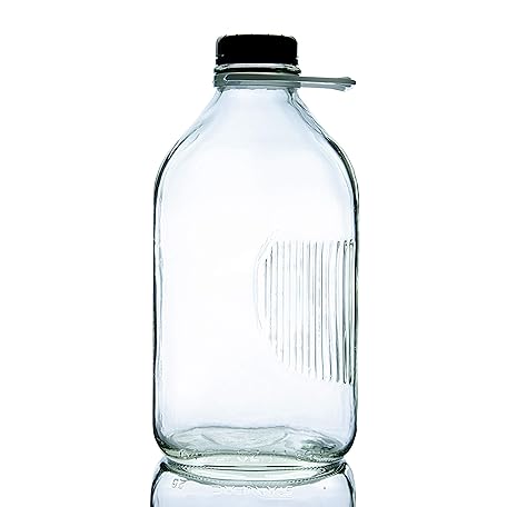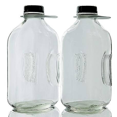 • North Mountain Supply 64 Ounce Heavy Glass Milk Bottle/Jug - 2 Pack - with 4 Tamper-Evident Lids & 2 Carry Handles